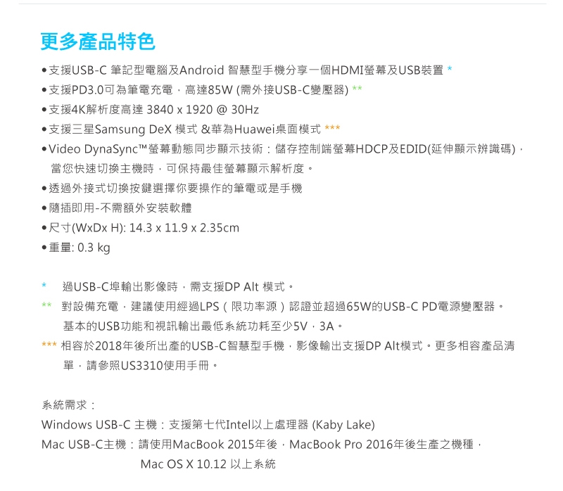 全畫面點對點傳送免設定免透過IP分享器 適用Windows7 8電腦或筆電 支援Miracast認證android行動裝置 主商品規格說明 含配件 影音端子 HDMI影片支援 可達1080P解